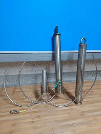 Ancora tutta in acciaio inox lunga 85cm con 1,5 metri di catena da 6mm sempre inox +100 metri cima a 3 trefoli da 15mm+ giunto girevole inox da 850kg + 3 galleggianti che servono per non far andare la cima sotto gli scogli, con marre in acciaio inox morbido facilmente raddrizzabili ma di ottima tenuta