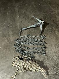 Vendo ancora pieghevole in acciaio zincato da 3.2 kg, completa di catena e cima nautica. Perfetta per gommoni, piccole barche, canoe, tender o kayak.