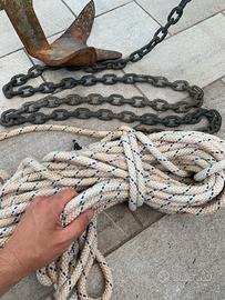 Ancora trefoil - Bruce da 7,5kg con 3 metri di. Atena calibrata dell'8 e 25 metri di cima del 12. Compreso schiavo in acciaio inox tra ancora e catena Condizioni come in foto