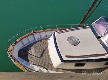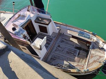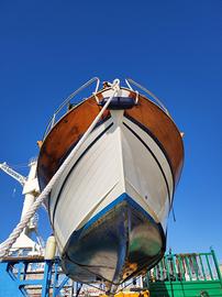 Aprea Mare Smetaldo 7 cabinato con motore entrobordo FNM diesel. Lo scafo e gli interni del gozzo sono in ottime condizioni, il motore da rivedere. Pozzetto in teak. Cabina con letto matrimoniale a prua, bagno separato con WC marino e lavabo, piccolo frigorifero e armadio a un'anta. Cucinino e doccetta esterni. Unico proprietario. Acquistata nel '92 al Cantiere Aprea Mare di Sorrento.