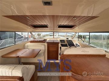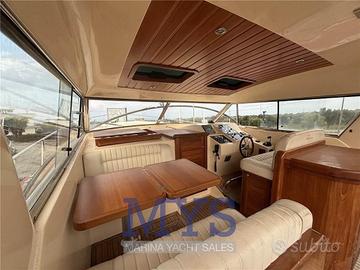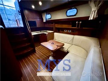 Ideale per coloro che cercano di unire stile e prestazioni in alto mare. Cabina matrimoniale, cabina ospiti doppia, 2 toilettes, dinette, cucinino. Calpestio in ciliegio filettato acero, essenze in ciliegio.
