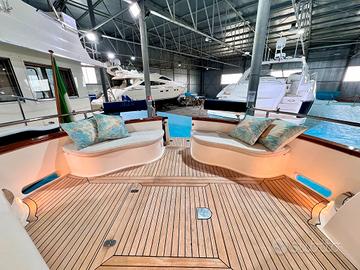 Hard top (Apribile),Porta ingresso di poppa,Prendisole di prua maxi con divanetto fronte marcia,Pozzetto Teak,Tavolo pozzetto,Piattaforma (con calpestio in teach).