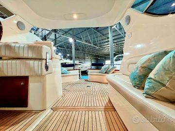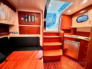 Hard top (Apribile),Porta ingresso di poppa,Prendisole di prua maxi con divanetto fronte marcia,Pozzetto Teak,Tavolo pozzetto,Piattaforma (con calpestio in teach).
