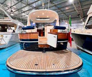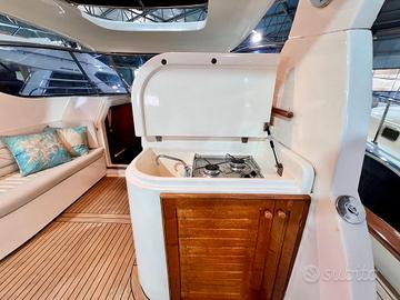Hard top (Apribile),Porta ingresso di poppa,Prendisole di prua maxi con divanetto fronte marcia,Pozzetto Teak,Tavolo pozzetto,Piattaforma (con calpestio in teach).