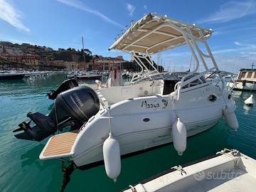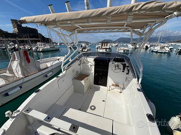 Vendo Aquabat Sport Cruiser 20 costruita nell’anno 2019 e con motore Yamaha 115 gambo L dell’anno 2020 con 253 ore di moto, sempre tagliandato e manutenuto presso concessionario yamaha per non perdere la garanzia, è abbinata un idroguida seastar per il controllo del timone. La barca è completa di cuscineria interna ed esterna originale e ben tenuta. La barca è dotata di due batterie per il motore e i servizi. Tra le dotazioni c’e anche una presa a mare per il lavaggio del ponte con pompa Marco e il wc manuale in cabina, il tutto funzionante alla perfezione. Nella barca è stata aggiunta una spiaggetta a poppa su misura in compensato marino e rivestita di vetroresina con teak sintetico plasdek. Il T-top è stato costruito su misura da T-Top Revolution in alluminio verniciato a polvere con 5 portacanne da riposo ed è allungabile verso poppa. Sempre a poppa abbiamo creato un supporto in alluminio per 4 portacanne girevoli, totalmente comodo per il drifting o bolentino o pesca alla seppia o in alternativa adatto come poggiaschiena con cuscino su misura. Nella barca in totale sono presenti 7 portacanne + 6 basette per portacanne girevoli. A prua abbiamo installato la staffa per il motorino di prua, da noi usato per le uscite di pesca e vendibile separatamente, se interessati. La barca è al gavitello in zona La Spezia, disponibile per essere vista e provata. Prezzo: 32000 € trattabili Recapito: 3492104881