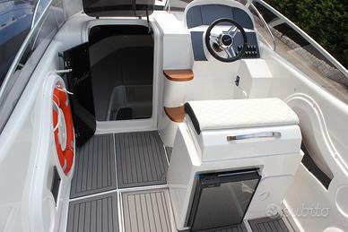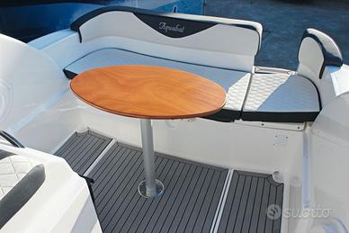 Occasione barca dimostrativa Aquabat Sport Cruiser 23 Motorizzata Honda 150 CV VTEC con 5 ore di moto Prezzo €69.500,00 si richiede il 5% di commissione ambo le parti per il servizio di mediazione Possibilità di finanziamento personalizzato a tasso nautico agevolato CARATTERISTICHE TECNICHE: Lunghezza: 6,95 m Larghezza: 2,40 m Potenza massima installabile: 200 CV Peso senza motore: 1300 kg Persone: 8 Materiale: VTR LISTA DEGLI ACCESSORI INCLUSI NEL PREZZO: Asta 360° | Carena bianca | Cucina e lavello | Cuscineria completa | Delfiniera | Doccia | Impianto carburante | Luci di via | Musone di prua | Parabrezza | Passo d'uomo | Piede tavolo | Pompa di sentina | Quadro interruttori | Scaletta bagno | Verricello elettrico | Volante con timoneria idraulica | Frigorifero | WC elettrico | Tendalino sole inox | Gommadeck | Cuscineria Lux | 2 batterie | Luci LED azzurre di cortesia AFFRETTATI, CHIAMA ORA: Tel 041 5322 123 Cell 349 CI TROVATE A MIRANO (VE) VIA PIGAFETTA 2/A Email: info@newnauticshow.com - Facebook: New Nautic Show SRL - Instagram: newnauticshow
