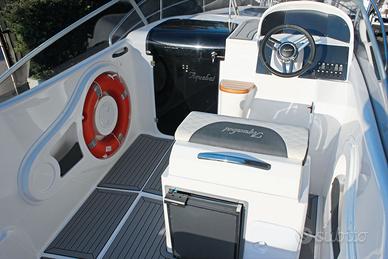 Occasione barca dimostrativa Aquabat Sport Cruiser 23 Motorizzata Honda 150 CV VTEC con 5 ore di moto Prezzo €69.500,00 si richiede il 5% di commissione ambo le parti per il servizio di mediazione Possibilità di finanziamento personalizzato a tasso nautico agevolato CARATTERISTICHE TECNICHE: Lunghezza: 6,95 m Larghezza: 2,40 m Potenza massima installabile: 200 CV Peso senza motore: 1300 kg Persone: 8 Materiale: VTR LISTA DEGLI ACCESSORI INCLUSI NEL PREZZO: Asta 360° | Carena bianca | Cucina e lavello | Cuscineria completa | Delfiniera | Doccia | Impianto carburante | Luci di via | Musone di prua | Parabrezza | Passo d'uomo | Piede tavolo | Pompa di sentina | Quadro interruttori | Scaletta bagno | Verricello elettrico | Volante con timoneria idraulica | Frigorifero | WC elettrico | Tendalino sole inox | Gommadeck | Cuscineria Lux | 2 batterie | Luci LED azzurre di cortesia AFFRETTATI, CHIAMA ORA: Tel 041 5322 123 Cell 349 CI TROVATE A MIRANO (VE) VIA PIGAFETTA 2/A Email: info@newnauticshow.com - Facebook: New Nautic Show SRL - Instagram: newnauticshow