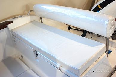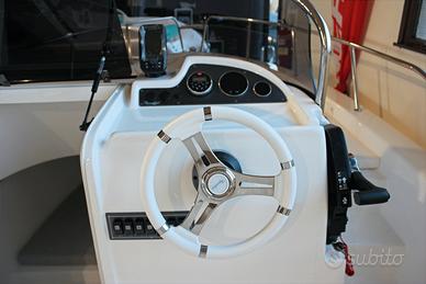 LISTA ACCESSORI INCLUSI NEL PREZZO:TIMONERIA monocavo, FALCHETTE IN LEGNO, PORTA CON SERRATURA CABINA CON 2 POSTI LETTO, 4 BITTE, TROMBA CARRUCOLA A PRUA SERBATOIO BENZINA 95 L, CON INDICATORE LIVELLO CARBURANTE, LUCI DI VIA, ASTA 360°, SCALETTA RISALITA, POMPA SENTINA, IMPIANTO DOCCIA, CUSCINI COMPLETI, POZZETTO AUTO SVUOTANTE, SEDUTA MULTIFUNZIONE CON LAVANDINO E FORNELLO A GAS, TAVOLINO, TAPPEZZERIA LUXURY ICE- WHITE.