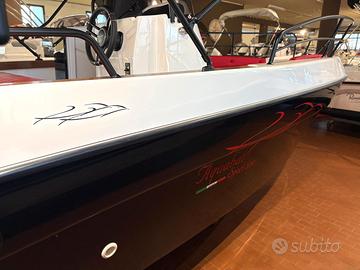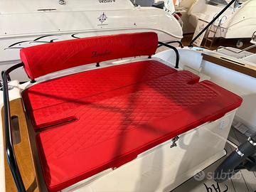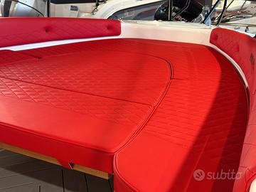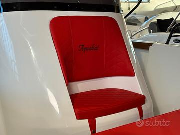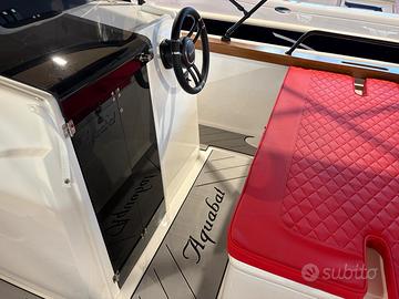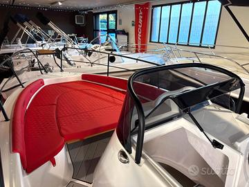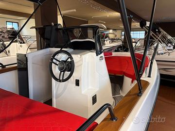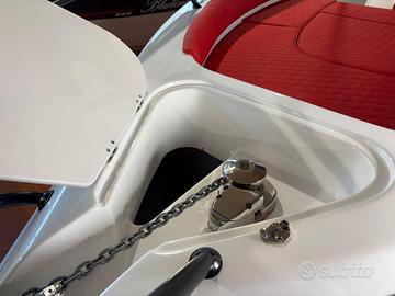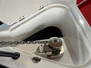 Asta 360° | Luci di via | 6 bitte | Tromba | Bussola | Cuscineria completa serie Lux | Consolle alta con guida centrale e porta d'accesso | Ampio locale predisposto per WC chimico amovibile | Doccia | Musone di prua | Parabrezza su consolle | Piattaforma di poppa incorporata con scaletta bagno e supporto motore ausiliario | Tendalino sole inox | Pozzetto autosvuotante | Serbatoio carburante 85 l | Pulpito di prua in acciaio inox | Quadro interruttori | Spalliera di poppa imbottita | Volante con timoneria idraulica | Pompa di sentina | Piede tavolo