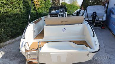 Aquabat Sport Line 21 Open collezione 2026 Motorizzata Mercury 40 cv Pro Unità in foto, PRONTA CONSEGNA PREZZO €42.500,00 IVA inclusa, FULL OPTIONAL Possibilità di finanziamento personalizzato a tasso nautico agevolato IN OMAGGIO PER LE OFFERTE DI MARZO: -5 tagliandi motore in regalo CARATTERISTICHE TECNICHE: Motorizzazione: F.B. Lunghezza f.t. cm: 615 Larghezza max cm: 230 Potenza HP/Power HP: 40-150 Peso a vuoto: 620 kg Portata persone: 8 Materiale: vetroresina Certificazione: CE categoria (C) LISTA ACCESSORI INCLUSI NEL PREZZO: Strumentazione e Navigazione GPS Garmin 5.2 CV | Bussola | Quadro interruttori | Luci di via | Asta 360° | Tromba Impianti Tecnici e Sicurezza Serbatoio carburante 85 l | Pompa di sentina | Pozzetto autosvuotante Manovra e Allestimento Esterno Salpa ancora elettrico | Musone di prua | 6 bitte | Pulpito di prua in acciaio inox | Piattaforma di poppa incorporata con scaletta bagno | Tientibene in acciaio inox Comfort e Allestimento Coperta Cuscineria completa serie Lux color avorio | Pavimento in gommadeck | Spalliera di poppa imbottita | Porta d'accesso cabina nero fumè | Piede tavolo | Tendalino sole inox Servizi e Intrattenimento WC chimico amovibile | Frigorifero elettrico portatile | Impianto doccia AFFRETTATI, CHIAMA ORA: Tel 041 5322 123 Cell 349 CI TROVATE A MIRANO (VE) VIA PIGAFETTA 2/A Email: info@newnauticshow.com - Facebook: New Nautic Show SRL - Instagram: newnauticshow