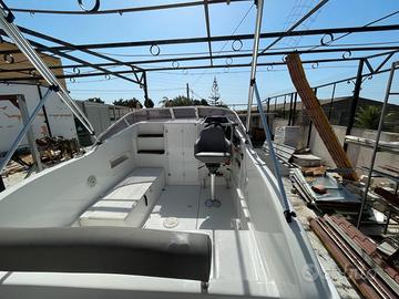 Dotata di 2 batterie, idroguida, pompa di sentina, radio con casse per musica, ecoscandaglio Garmin, serbatoio benzina da 70 litri, tendalino.