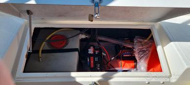 Vendo per passaggio ad altra categoria Aquamar Bahia 20 Cabin (2004) in perfette condizioni, affidabilissimo motore Evinrude E-TEC 90cv del 2008 dai consumi irrisori. Barca semicabinata 6 metri, omologata per 8 persone, ideale per pesca o gite familiari fuori porta. Impianto elettrico rifatto nel 2022, doppia batteria 80 Ah ciascuna nuove (2022 e 2025), stacca batteria, impianto fotovoltaico per batterie sempre cariche (2021), impianto carburante nuovo (2022), ampia cabina con 2 posti letto, wc elettrico separato in cabina, lavello, frigo bar, inverter 250w, impianto stereo bluetooth con casse audio sia in pozzetto che in cabina, radio VHF nautico (2021), Ecoscandaglio GPS Lowrance Hook Reveal 7" TRIPLESHOT, Teak nuovo in pozzetto e plancette (2022), robusto roll-barr in acciaio inox con tendalino coprente e faretti incassati per pozzetto (2021), ampio prendisole a prua, sedili girevoli nuovi (2022), tavolino, completa di cuscineria in parte rifatta (2021 e 2022), doccetta esterna acqua dolce nuova (2022), pompa di sentina, luci di via, luci led pozzetto e cabina, 2 porta canne, serbatoio benzina da 91 litri, serbatoio acqua da 70 litri. Si vende completa di dotazioni di bordo entro 12 miglia acquistate nel 2021 (valide fino al 2025), 8 parabordi, mezzo marinaio, remo, 2 ancore con 50 mt di cima, cime di ormeggio. Barca pronta per navigare, non necessita di nessun lavoro oltre semplice rimessaggio invernale. Contattare tramite WhatsApp solo se veramente interessati, no affaristi e perdi tempo. Prezzo trattabile. Altre foto su richiesta. In atto motore non funzionante. Disponibile a vendere anche solo lo scafo a prezzo da concordare.