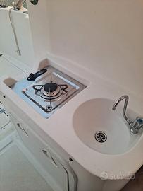 Cucina con fornello a gas e lavello,