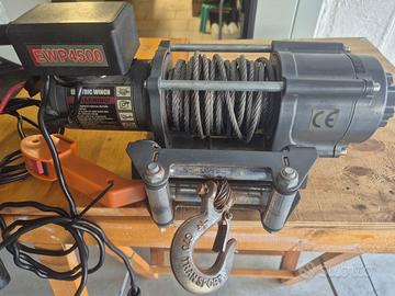 Argano elettrico per carrelli EWP 4500 anno 2017 marcatura CE in ottimo stato, usato pochissimo volte. Caratteristiche tecniche: 12 volt, peso di trazione 2050 Kg, cavo in acciaio lunghezza 10 metri perfettamente integro. Evitare offerte non in linea con la richiesta. telecomando.