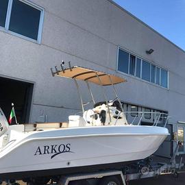 Barca arkos 630 bimax WA completa di t-top 316-L , salpa ancora elettrico , cuscineria interna ed esterna, tendalino . Ecoscandaglio furuno 627 e Ecopolotter garmin tuch , 3 trasduttori (1 interno , 1 esterno , 1 bronzo passante ) , presa a mare per vasca del vivo , pompa sentina Manuale ed automatica . Impianto elettrico pronto da cablare verrà consegnata con impianto perfetto in ogni sua parte .