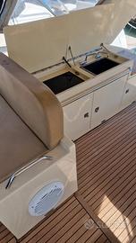 Teak perfetto, Passerella automatica besenzoni dotata di telecomando; salpa ancora automatico con telecomando o comandi;boiler; autoclave; doccia esterna freddo caldo; sistema illuminazione a LED con 6 illuminazioni diverse; cuscineria bicolore realizzata da un artigiano di Napoli; impianto stereo interno ed esterno dotato di BT.