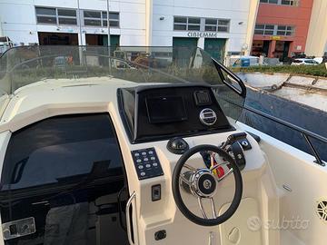 NOTE SUL PREZZO IVA Inclusa DATI PRINCIPALI Cantiere: AS Marine Modello: AS 26 GL Anno Costruzione: 2023 Lunghezza: 7,7 m Condizione: usato Tipologia: Walk Around Codice: 888470 MOTORI Potenza: 1 x 250 Hp Modello: Suzuki 250 APX Tipologia: Fuori Bordo 4-Tempi a Iniezione Anno: 2023 DATI TECNICI Larghezza: 2,55 m Persone trasportabili: 8 Serbatoio carburante: 270 l Serbatoio acqua: 45 l Impianto elettrico: 12V STRUMENTAZIONE ELETTRONICA DI NAVIGAZIONE Bussola, Ecoscandaglio, Plotter con antenna GPS. ALLESTIMENTO TECNICO E DI COPERTA Allarme motore, 2 Batterie, Doccia esterna, Flap elettrici, Pompa di sentina automatica, Rollbar, Salpa Ancore Elettrico, Tavolo pozzetto, Tromba. DOTAZIONI DOMESTICHE DI BORDO Prese interne 12v, WC marino elettrico. INTRATTENIMENTO Radio AM/FM, Stereo. CUCINA ED ELETTRODOMESTICI Frigorifero esterno. TAPPEZZERIE Bimini, Copripozzetto, Cuscineria completa, Cuscineria di poppa.