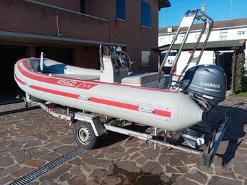 Vendo gommone Asso 50 con carrello Ellebi revisionato, entrambi anno 1999, completo di motore Yamaha anno 2023 con 200 ore. L'imbarcazione è dotata di tendalino, telo copri gommone, GPS cartografico ed ecoscandaglio.