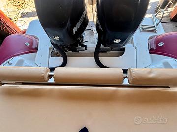 Splendido gommone Asso 7,5 mt con 2 Merury Verado 150 cv tutto 2009 in ottime condizioni. A velocità di crociera consumano 18 l/h cadauno (visibile da computer di bordo). Pronto all'uso senza alcun lavoro da fare. Sempre tenuto al coperto. Tagliandi fatti tutti gli anni presso officina autorizzata Mercury documentati. Antivegetativa data solo negli ultimi 4 anni. - Tendalino nuovo 2026 da rinnovare - Cuscineria rifatta nel 2025 come nuova - Tendalino prua + 5 laterali fatti nel 2024 come nuovi - Manette elettroniche idroguida. - GPS e ecoscandaglio fishfinder - doccetta a poppa - WC chimico nel gavone di poppa con tenda su misura - VHF, pompa di sentina e motore salpa ancora nuovi 2025 - Sospendite - Gonfiatore elettrico - telo copri consolle - telone per chiusura integrale - ampie plancette di poppa con vano per maschere pinne Visibile a Castiglione della Pescaia