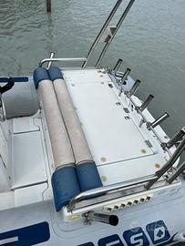 6 porta canne da riposo, 2 da traina, 2 affianco console e 2 a prua.