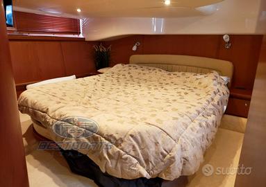ATLANTIS 425 SC Anno di costruzione 2008 Lunghezza m. 13,53 Larghezza m. 4,02 RINA valido fino Luglio 2025 Layout interno Cabina armatore con letto a penisola, armadi e bagno en suite con box doccia Cabina ospiti VIP con letto a penisola, armadi e bagno en suite con box doccia Dinette con divano a “C” tavolo in massello pneumatico trasformabile in letto Cucina completa di Lavello, Piano cottura, frigorifero e forno a microonde Due Bagni completi di Mobile porta oggetti, lavabo, WC elettrico e box doccia Layout Esterno Prendisole di poppa e prua, hangar per il tender a poppa Dinette esterna con divani e tavolo Mobile in pozzetto con lavello, Grill e frigorifero Motorizzazione VOLVO PENTA D6 330 DP – 2 X 330 HP Dotazioni e armamento Verricello elettrico con ancora e catena, Conta metri catena e telecomando, Impianto elettrico 12/220 V. con allaccio banchina, Generatore MASE, Carica batterie, Batterie motori + batterie servizi, Aria condizionata con pompa di calore in tutti gli ambienti, Elica di prua, Boiler acqua calda, Passerella telescopica, Rivestimento Pozzetto in Teak, Spiaggetta di poppa in Teak nuova con scaletta di risalita a scomparsa e luci subacquee, Mobile in pozzetto con lavello – grill e frigorifero, Impianto TV, Impianto stereo Radio/CD con comandi remoti, altoparlanti stereo interni ed esterni, GPS cartografico, Autopilota, Ecoscandaglio, Radio VHF, Faro orientabile con comandi in plancia, Luci di cortesia, Correttori d’assetto, Garage per tender con apertura elettro idraulica