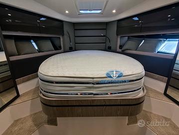 Gli esterni offrono un ampio pozzetto con area prendisole, wet-bar, piattaforma bagno idraulica e hard-top con tetto apribile, ideali per crociere rilassanti in grande stile.