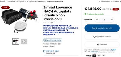 VENDO Simrad Lowrance NAC-1 Autopilota Idraulico con Precision 9 COMPLETO DI BUSSOLA DIGITALE - POMPA IDRAULICA - CENTRALINA NC1 - CAVI PROLUNGHE E CONNETTORI NMEA2000 ACQUISTATI A PARTE.