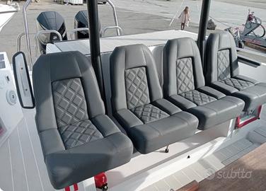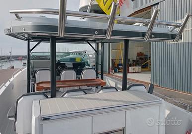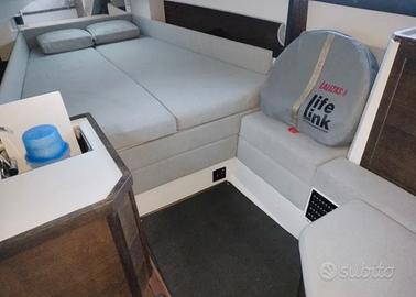 AXOPAR 37 SUN TOP - 2020 - 2x300 CV V8 MERCURY - 290 ORE Immatricolato a giugno 2020. BRABUS LINE - Joystick, pilota automatico Mercury. 2 display combinati ecoscandaglio/GPS Garmin, VHF fisso, radar, radio Fusion, vasca del vivo, WC marino, caricabatterie, elica di prua, telo invernale, tende T-Top, coperture cuscineria, verricello elettrico, dotazioni di sicurezza semi-altura per 8 persone, ancora e ormeggi, 8 parabordi, palo sci nautico, faro di coperta elettrico, fornello elettrico, tetto apribile elettrico, portacanne, grande tavolo pozzetto, flap elettrici, frigoriferi, cuscineria interna ed esterna, telo di rimessaggio completo. In condizioni perfette. Barca sempre rimessata a secco ogni inverno dal 2020. Storico manutenzioni disponibile dal 06/2020 su richiesta. Sintesi delle caratteristiche principali: Caratteristiche generali Lunghezza fuori tutto (L.O.A.): 11,50 metri (37 piedi 9 pollici) Larghezza: 3,35 metri (11 piedi) Pescaggio: 0,85 metri Capacità: categoria di progettazione B (Offshore) per 10 persone e C (Costiera) per 12 persone Chiamare Roberto Bonora Prezzo per vendita rapida