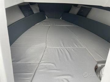 Ampia cabina con prolungo letto e wc elettrico Completa di Impianto elettrico, impianto carburante con serbatoio da 140 lt, impianto doccia, plancette di poppa con passaggio centrale e doppia scaletta, gps/eco Garmin, luci di cortesia, luci subacquee, impianto stereo con 4 casse, rollbar con tendalino anteriore e posteriore, tavolo.