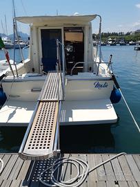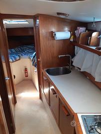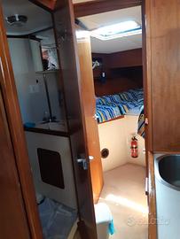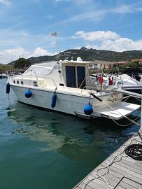 SVENDITA CON RIBASSO PER INUTILIZZO. Causa impossibilita, si svende barca rimessa a nuovo, verniciatura intero scafo, finestratura e porta di ingresso, cuscineria interna ed esterna, tende oscuranti, impianto elettrico, tende parasole pozzetto. Posti letto 6, due cabine separate e dinette trasformabile. Bagno, doccia, aria condizionata. Volvo Penta 200×2, diesel linea d'asse, ricondizionati 150 ore. GPS e autopilota, VHS e Hi Fi, boiler e autoclave. Passerella d'ingresso retrattile, tendalino sul pozzetto e sopra il posto di guida.