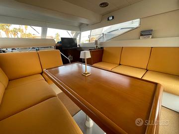 - Dinette con ampi divani su entrambi i lati e tavolo rettangolare in radica - Ampio pozzetto di poppa , cuscineria esterna nuova, tendalino e doccia esterna