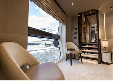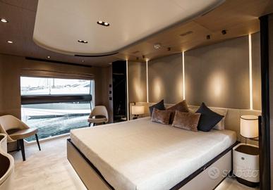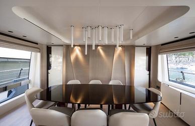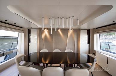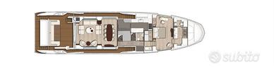 Allarme motore, Allarme sentina, Camminamenti laterali in teak, Elica di poppa - stern thruster, Elica di prua - bow thruster, Flap idraulici, Garage per tender, Hard top, Impianto antincendio, Impianto Aria Compressa, Indicatori Flaps, Luci di cortesia, Luci subacquee, Passerella, Piattaforma (Beach), Pompa di sentina automatica, Ponte in teak, Porta laterale, Pozzetto Teak, Presa 220V banchina, Salpa Ancore Idraulico, Stabilizzatori (Pinne Zero speed), Winch Idraulico.