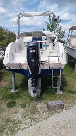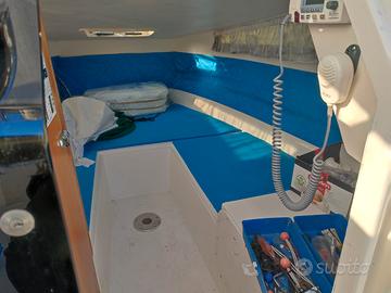 barca in ottime condizioni, tagliandata tutti gli anni, motore mercury 40/60, con 300 ore, fuori garanzia da un anno, attrezzata da pesca al tonno , tre pompe di sentina , due batterie da 80 a, tendalino doppio, luci x pesca notturna, 2 serbatoi di cui uno in acciaio inox da 110 l, serbatoio acqua con doccetta , attualmente smontato, dotazioni di bordo x le 12 miglia, radio, 8 portacanne , 1 porta pasturatore elettrico, salpa ancora elettrico. barca in acqua a rosolina .