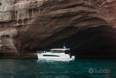 Natante semi planante ben rifinito e perfetto per navigazione marina e costiera ad una velocita massima di 25kn, e crociera 18 Kn. Possibilità di installare 1 o 2 motori fuoribordo per un massimo di 250hp. Il più alto pregio di questo natante è la qualità dello spazio interno, la sua ampiezza, senza spechi. E' un modello dedicato agli amanti del confort e della comodità.