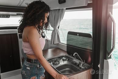 La barca può trasportare fino a 6 persone ed è disponibile una versione con 3 cabine oppure con 2 cabine + 1 cabina armadio di grande dimensione. Il bagno e alto e confortevole, a tutt'altezza.