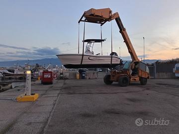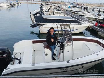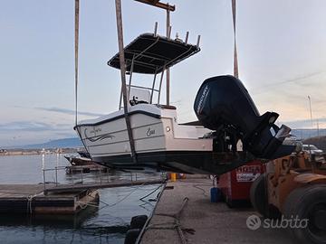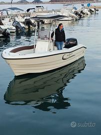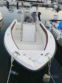 vendo open di metri 5.50 barca interamente x la pesca molto spaziosa murate alte consol con prese laterali x mulinelli elettrici t top in acciaio inox con 4 porta canne a riposo 6 basette x porta canne estraibili doppia batteria ecoscandaglio furuno 627 con sonda passante in bronzo B45pannello solare x la ricarica batteria vasca del vivo a scomparsa sotto la a seduta motore 115 CV modello fiscerman americano con meno di 70 ore di navigazione a l'attivo barca nuovissima acquistata nel 2023 no perditempo solo persone interessate grazie il prezzo si riferisce senza permute23.000 euro con eventuale permuta sempre si mio gradimento