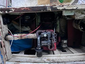 Gozzo autosvuotante in vetroresina 4,85 Mt con motore entrobordo lombardini 21cv raffreddamento ad aria completo di tutti gli accessori pronta per navigare