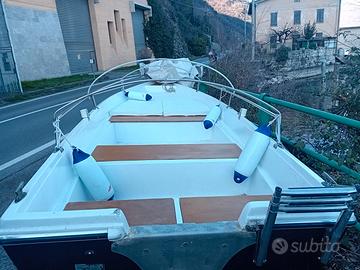 Barca vetroresina 5.5 mt compresa di motore 25 cavalli Envirude, tendalino copri sole, telo di copertura e predisposizione per impianto luci.