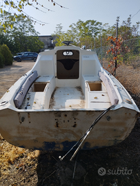 Vendo per inutilizzo barca 5,30m ,senza carrello,con motore 25 Yamaha 2 tempi funzionante con libretto, portato sempre a revisione e usato fino all'estate scorsa.