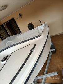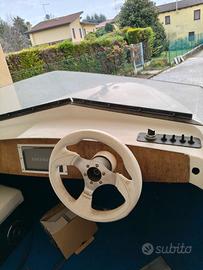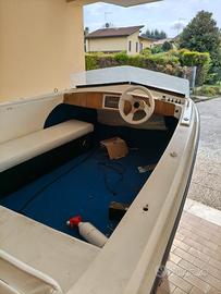 Lancina 4,30m quasi completamente rifatta, mancano un paio di lavoretti per chi se la sistema carrello con documenti incuso con ruote da 8, ruota di scorta da10, omologato fino a 10” manca revisione per circolare. Motore 25cv Johnson usato ultima volta giugno 2020 manutenzione ordinaria da fare, cambiare girante e olio piedino Motore elettrico ausiliario Yamaha 1cv Scafo grattato completamente e riverniciato con fondo epossidico e finitura poliuretanica Cuscineria (panca laterale, panca posteriore con schienale, sedile guidatore) rifatta con ecopelle nautica Nuovo gavone ricavato nella parte anteriore, mancano le chiusure Sponda posteriore per battuta motore in acciaio inox nuova, da rivedere spessore del legno Faretto posteriore nuovo Faretto anteriore da rivedere Tione acciaio inox e poliuretano nuovo Altoparlanti JBL Pannello radio touch con sistema operativo Android Archetti acciaio inox su misura per telo, rimessa Salvagente, Estintore, 2 giubbini di salvataggio non omologati 2 remi alluminio e plastica Ancora Corda acciaio verricello carrello nuova impianto elettrico e audio predisposti da ultimare LA BARCA HA QUALCHE LAVORETTO DA FARE PER ESSERE MESSA IN ACQUA, L' ANNUNCIO RIVOLTO AD APPASSIONATI E LAVORETTISTI DEL WEEKEND