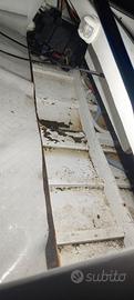 Vendo barca in legno resinato SENZA MOTORE, lunghezza 380cm larghezza massima circa 167 cm. Come si vede in foto ha almeno un due punti in cui la resina che copre il legno è crepata e sarebbe penso da stuccare o comunque da restaurare. Ha preso un po' di acqua perché si è rotto il telo ma il legno è sano. Prezzo 150? trasporto organizzato da chi l'acquista, comune San Giorgio di Nogaro