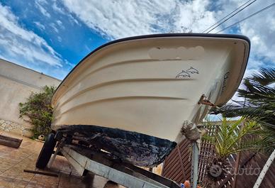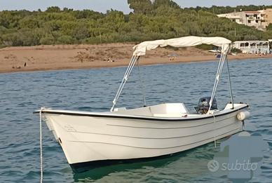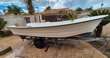 Barca 3 fasce tipo palermitana metri 5 con Yamaha 20 cv 4 tempi. Ottime condizioni. Usata per brevi passeggiate. Mai utilizzate reti. Motore con ricarica 12v. Pompa di sentina, scaletta, tendalino ecc