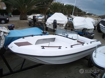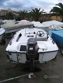 Vendo barca da 4,5 metri completa di motore Evinrude XP 25 cv 2 tempi, guidabile senza patente nautica. Dotazioni comprese: - Carrello (non stradale) - Tendalino removibile - Giubbetti di salvataggio - Batteria nuova sostiuita l’anno scorso - Telo copri barca (da rattoppare in un punto) La barca è dotata di due porta canne laterali. In alcune foto è visibile il motore precedente, ma la barca attualmente ha un Evinrude XP25 2 tempi, con girante nuova sostituita l’anno scorso. La barca si trova a Cupra Marittima ed è disponibile per visione.