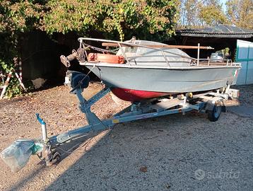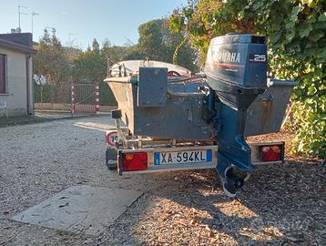 Barca 4.5 metri con motore Yamaha 25 cv, 3 cilindri 2 tempi con miscelatore automatico e avviamento elettrico. Motore datato ma funziona perfettamente e sempre usato poco.