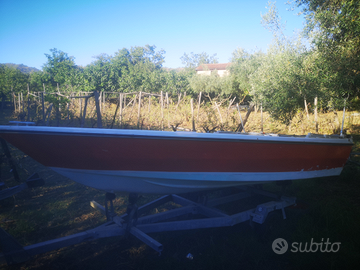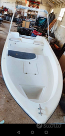 Barca 4,70 con tendalino a 3 aste, cuscini, scaletta acciaio inox, luce 360°,2 barre led incorporate nel tendalino a scomparsa, 4 luci a faretti incassati internamente che illuminano il pianale, pulsantiera marina con led che indica quale pulsante in uso, pompa sentina automatica, azionabile anche manualmente tramite pulsante, gavoni di prua e di poppa. No motore, no carrello!!