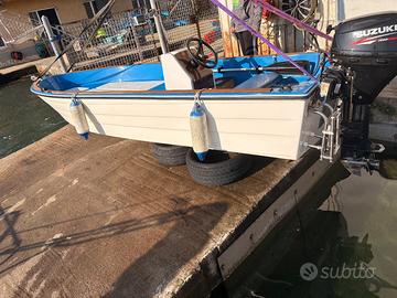 Vendo barca 4mt e 20, monta motore Suzuki 15CV perfettamente funzionante tagliandato maggio 2025.