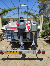 Vendo barca 5.20 fuori tutto motore Yamaha 40cv 2 tempi+7cv 4tempi. Carrello omologato ellebi, scaletta di risalita, luci di via, faretti led supplementari, pompa di sentina, ecoscandaglio 7pollici, tendalino, dotazione di sicurezza 3 miglia