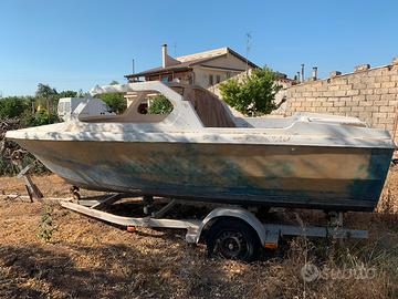 Semicabinato Vega da restaurare Metri 5,50 Con motore yamaha 40cv. Sono compresi alcune dotazioni non in foto (scaletta, luci, timone, giubbotti, cavi, ecc.) Vendo per cambio progetto o valuto permuta o scambio con piccolo motoscafo