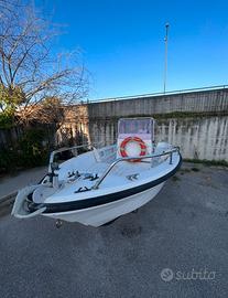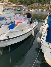 vendo scafo 5.8 metri astra top line 190 in ottime condizioni, con doccetta e serbatoio per l acqua dolce, con cuscini prendisole e del posto di guida, comoda plancetta in legno con pratica scaletta per scendere in acqua, ha un'ancora bruce, ha tutte le bitte in acciaio inox montate la scorsa estate, ampi gavoni sia a prua che poppa, autosvuotante con pompa di sentina automatica, serbatoio benzina 40 litri, motore mercury 40cv 4 tempi del 2008 con circa 200 ore, a iniezione, motore affidabilissimo nel suo genere e non necessita di patente nautica. Lo scafo è dotato anche di sostegno per motore di emergenza, come si puo vedere in foto, inoltre fornisco salvagente e 6 giubbotti di salvataggio, set di parabordi, ecoscandaglio lowrance e due portacanna. Contattare qui sulla chat di subito se interessati.