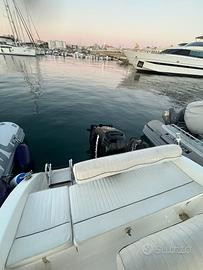 Barca Acquamar Samoa 19 con Mercury 40/60. nuovissima,spaziosa e ottima per pesca o per uscite con più persone, tenuta in maniera maniacale, lavata dopo ogni uscita . -Serbatoio da 90 litri incassato,ispezionabile . -Luci interne barca nuove -impianto elettrico nuovo -cavo sterzo nuovo -tendalino 3 archi acciaio -doppia batteria con stacca batteria -pompa di sentina con galleggiante nuova -autoclave con doccetta e serbatoio da 30 litri acqua dolce -casse e stereo bluetooth -cuscineria nuova usata solo per fare le foto -antivegetativa appena fatta -cambiati cavo marce e acceleratore -motore Tagliandato con 0 ore all’attivo -faro da distanza orientabile nuovo Motore 40/60 Mercury con circa 300 ore di moto sempre tagliandato presso officina autorizzata e risciacquato dopo ogni uscita, 28 nodi in due persone. Prezzo leggermente trattabile, possibile prova in mare con meccanico di fiducia 3311895097